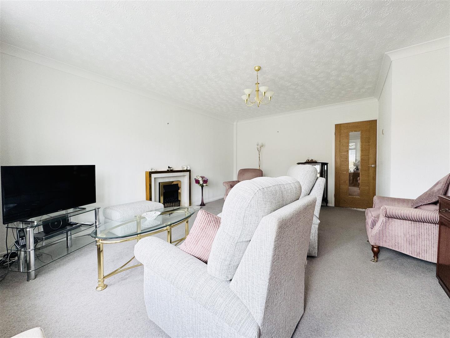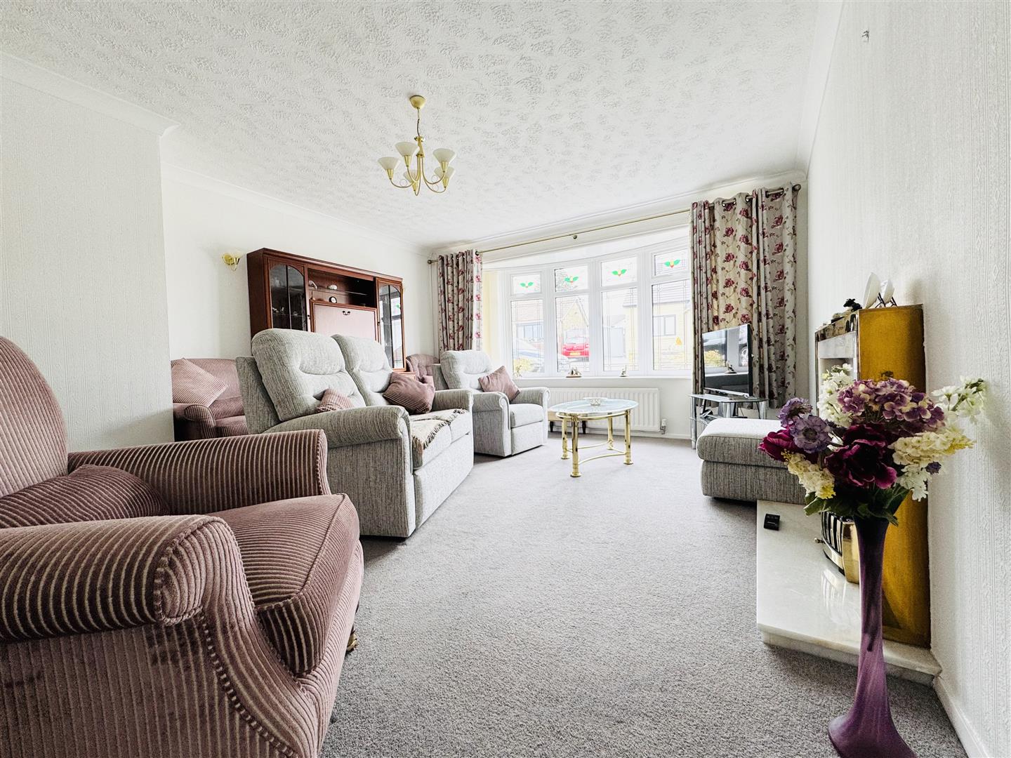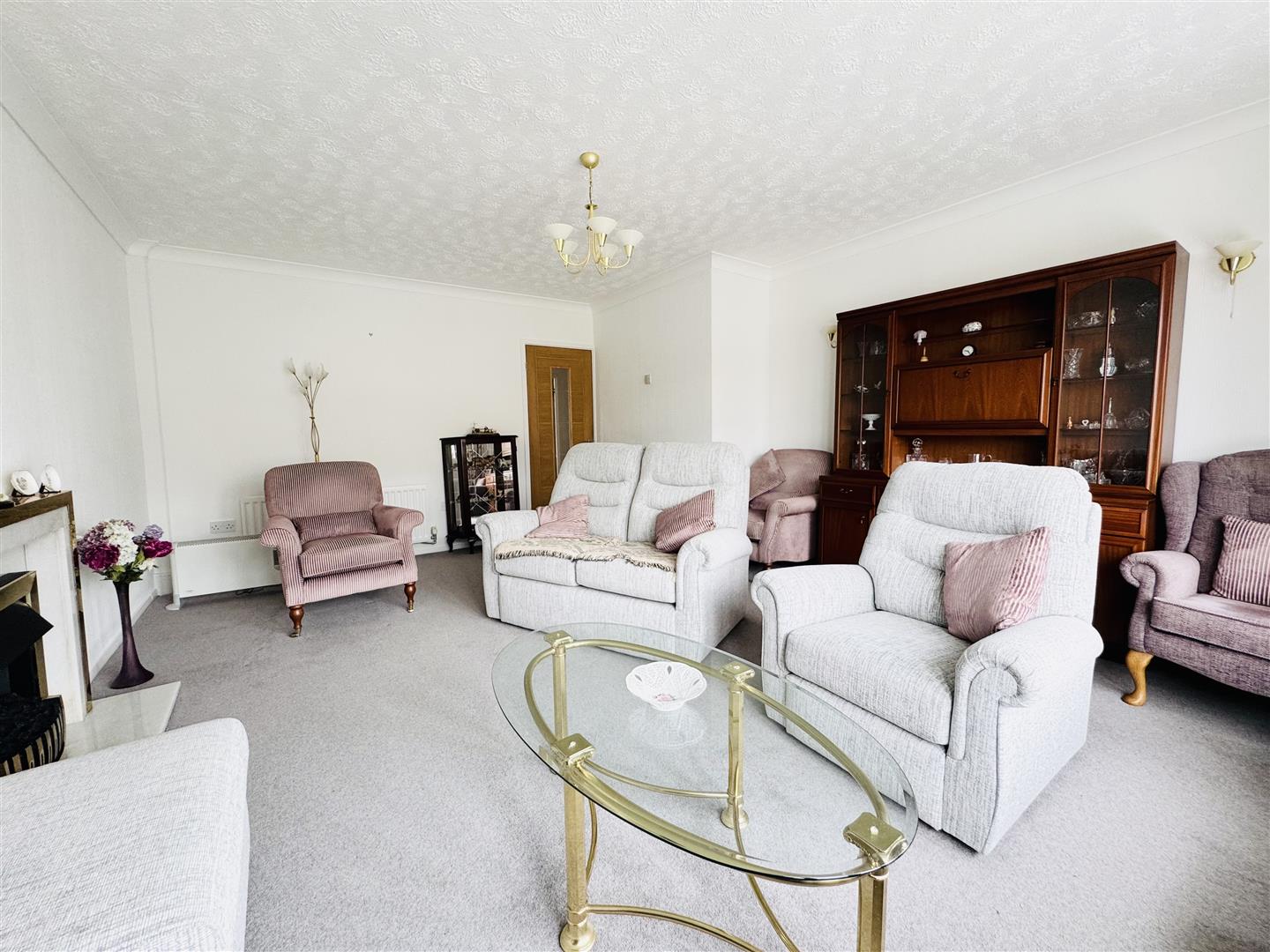 Positioned to the front of the property with a large bay window simply flooding the room with natural light, this lovely large lounge has an electric fire in a marble and brass surround as a focal point and ample space to accommmodate lounge furniture. The room is neutrally decorated with a central brass ceiling light. An oak door leads to the hallway.