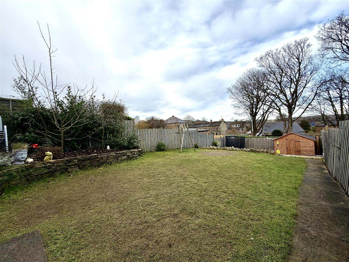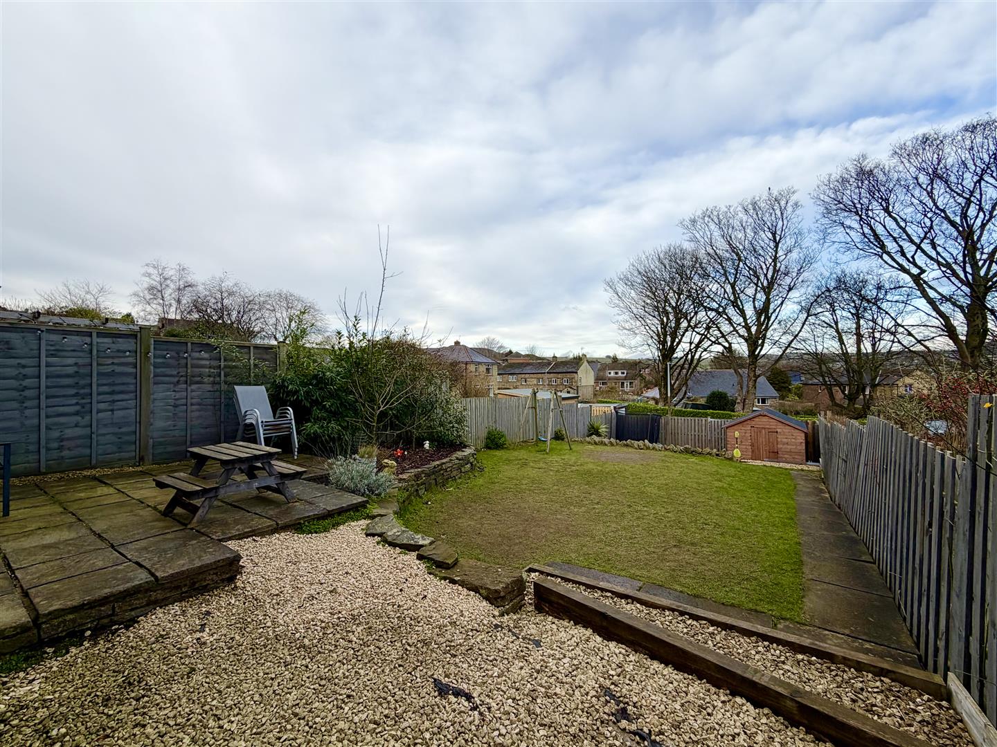 Being of a particularly generous size and set over several levels this is an ideal outside space for family life or indeed summer entertaining, being fully enclosed to all sides. Commanding elevated views, this multi purpose garden includes a paved patio seating, lower level large lawn with raised borders and further lower level gravelled amenity area currently housing a timber shed with pedestrian gate to rear lane. We are advised that this lower area previously sited a single garage which could be reinstated, if required, subject to necessary consents.