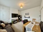 This light and airy lounge offers ample space for living room furniture, fitted shelving and cabinets. There is a fireplace with tile surround creating a focal point to the room, A large window overlooks the front garden and a door leads through to the entrance hallway.