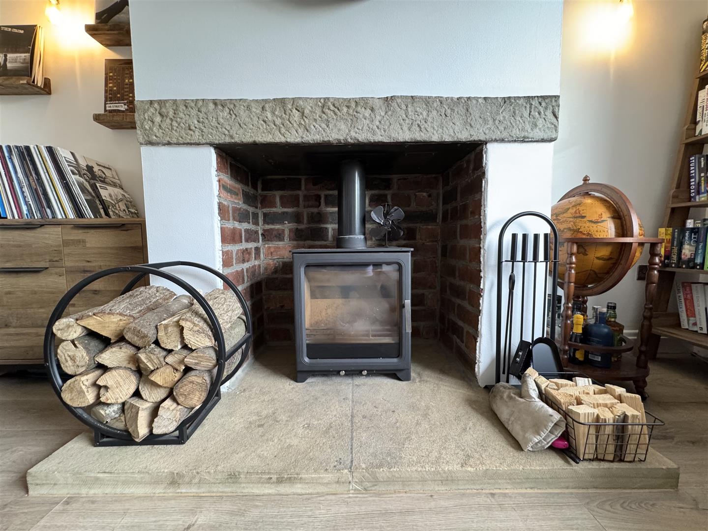 Enjoying garden views from its large window, this generously sized lounge offers ample space for lounge furniture and has a charming inglenook fireplace with a mulitfuel stove as a focal point. Deep alcoves either side provide perfect homes for freestanding furniture items. Wood effect laminate flooring runs underfoot and there is a mixture of wall and ceiling lighting. Timber doors lead through to the kitchen and entrance hall.